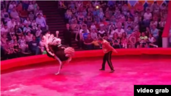 На видеозаписи, сделанной Лилией Сунгатуллиной, видно, как птица выбегает из манежа и несется в первые ряды прямо на зрителей. Взрослые и дети в панике покидают свои места, но по некоторым страус все же успевает потоптаться. Ведущий приносит извинения и просит сохранять спокойствие. Через несколько секунд дрессировщику удается увести птицу. Зрители возвращаются на свои места, и представление продолжается.