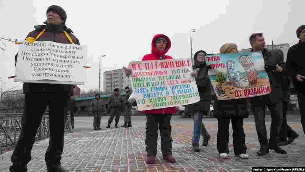 На акции протеста собрались несколько десятков человек, в том числе активисты из других "горячих точек" города — Дербышек и Салмачей. ЛЮди требуют оставить их микрорайон в покое и установить шумозащитные экраны (у подножья холма проходит оживленная трасса). Подробный репортаж о митинге можно прочитать здесь.