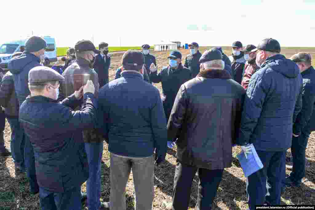 Все кадры сделаны во время поездок президента РТ Рустама Минниханова в сельские районы в апреле 2020 года, когда в Татарстане уже действовал режим строгой "самоизоляции".