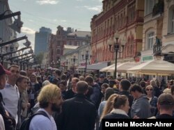 Когда Трубная опустела, большая толпа собралась на Арбате.