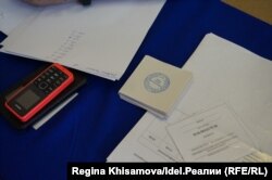 Корреспонденты "Idel.Реалии" обнаружили на столе члена комиссии квадратные листочки, на которых стоят печати УИК. Работник комиссии заявила, что они предназначены для избирателей, чтобы те могли предоставить доказательство волеизъявления на работе. По просьбе журналистов она убрала их.